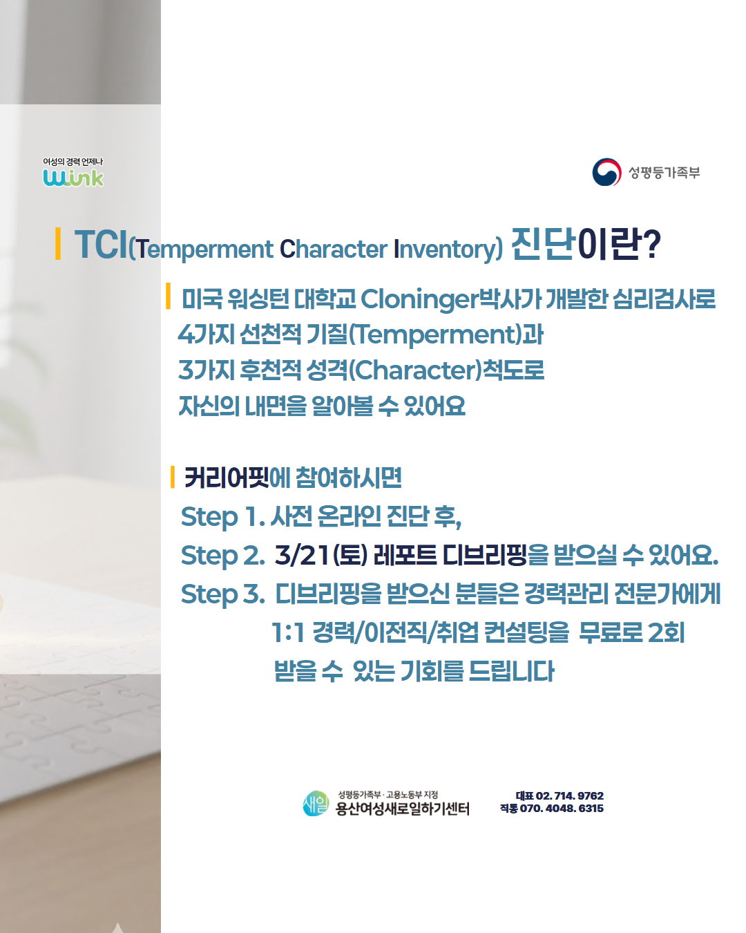 ★TCI 진단은 구글폼 신청 시 기재한 핸드폰이나 이메일로 안내 예정