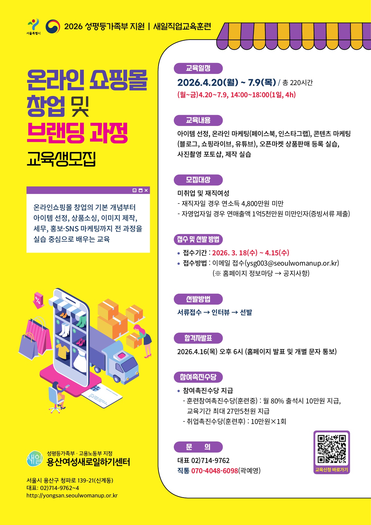 - 접수방법 : 이메일(ysg003@seoulwomanup.or.kr) 접수